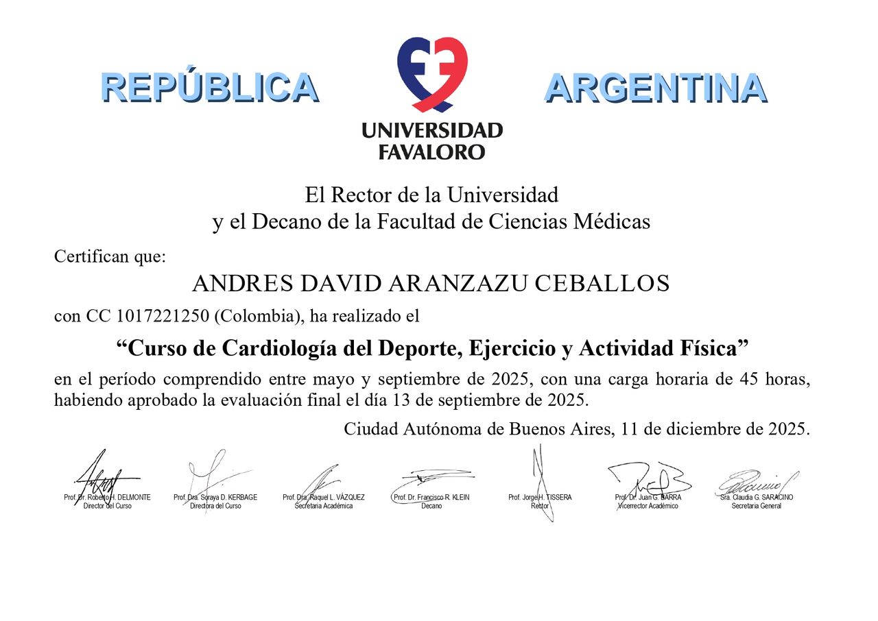 Soy pediatra y cardiólogo pediatra de la Universidad Pontificia Bolivariana, además tengo un entrenamiento en cardiología deportiva en la Universidad Favaloro (Argentina). Me dedico al cuidado del corazón de bebés, niños, adolescentes y deportistas. Mi trabajo se centra en ofrecer una atención médica cercana, clara y confiable, siempre pensando en la tranquilidad de las familias.